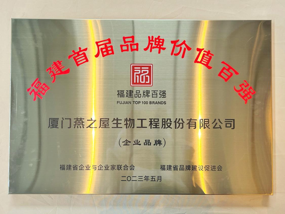 圖:燕之屋入圍福建首屆品牌價(jià)值百強(qiáng)榜單