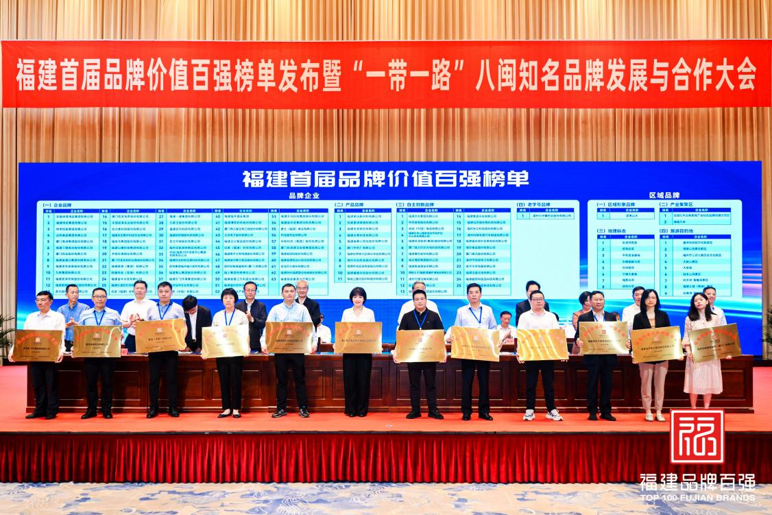 圖:福建首屆品牌價(jià)值百強(qiáng)牌匾頒授(左六:燕之屋品牌中心副總監(jiān)楊航)