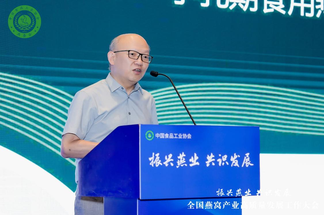 圖:中國食品工業(yè)協(xié)會燕窩及膠類蛋白食品工作委員會會長王強作大會介紹