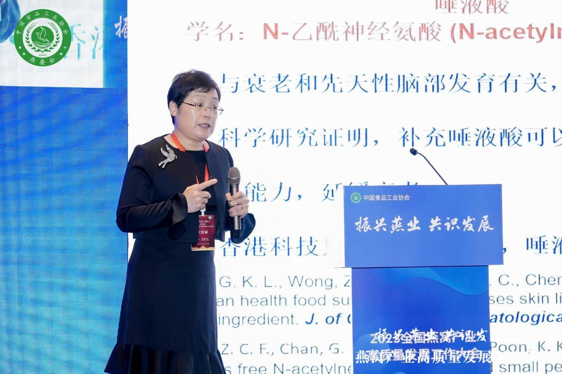 針對燕窩與燕窩肽的健康價值與營養(yǎng)功能方面的專業(yè)話題,大會特邀來自各大高校、機構的專家、教授帶來精彩燕窩研究報告,科普燕窩知識、分享前沿科研成果。中國醫(yī)學科學院北京協(xié)和醫(yī)院臨床營養(yǎng)科主任醫(yī)師教授、碩士研究生導師馬方在《一人吃燕窩,兩代人受益——孕乳期食用燕窩的健康價值》報告中,從臨床的角度對燕窩與孕幼營養(yǎng)關系、需求關系、供給關系進行了講解,指出大量古籍記載燕窩為味甘、性平、溫和之物,經過浸泡清洗加工煮熟后,孕期食用有幫助。福建省農林大學食品學院副院長張怡《基于腦腸軸的燕窩對斷乳后仔鼠智力影響的分子機制》、香港科技大學研究員、博士董婷霞《燕窩活性成分與功效研究》、華南理工大學教授任嬌艷《功能性肽與精準營養(yǎng)》、肽賽利多肽(武漢)研究所所長殷臘生《燕窩肽營養(yǎng)功能與消化吸收》等報告同樣為與會者帶來全面、科學、專業(yè)的前沿動態(tài),進一步為行業(yè)高質量發(fā)展樹立信心、夯實科研基礎。