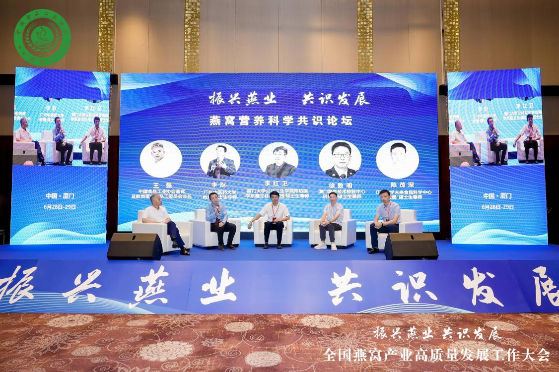 為推進燕窩產業(yè)高質量發(fā)展和品牌建設,穩(wěn)固業(yè)態(tài)基礎,營造行業(yè)良好的經營氛圍,6月28日-29日,由中國食品工業(yè)協(xié)會主辦,燕之屋協(xié)辦的“振興燕業(yè),共識發(fā)展”2023全國燕窩產業(yè)高質量發(fā)展工作大會在廈門盛大舉行。中國食品工業(yè)協(xié)會副秘書長張京玉,中國食品工業(yè)協(xié)會燕窩及膠類蛋白食品工作委員會會長王強,燕之屋品牌總監(jiān)沈曉聰,馬來西亞燕窩產業(yè)出口協(xié)會會長、拿督蔡千根,柬埔寨燕窩生產出口協(xié)會會長吳慧珍,中國醫(yī)學科學院北京協(xié)和醫(yī)院臨床營養(yǎng)科主任醫(yī)師馬方,福建省農林大學食品學院副院長張怡,香港科技大學研究員董婷霞,華南理工大學教授任嬌艷,江南大學未來食品科學中心教授、碩士生導師陳茂深,廣州中醫(yī)藥大學教授、博士生導師李耿,廈門大學公共衛(wèi)生學院副教授、碩士生導師李紅衛(wèi),等領導、專家和嘉賓出席大會。眾多食品行業(yè)及燕窩行業(yè)專家學者、企業(yè)家、從業(yè)者共聚一堂,共同探討燕窩行業(yè)未來發(fā)展規(guī)劃。