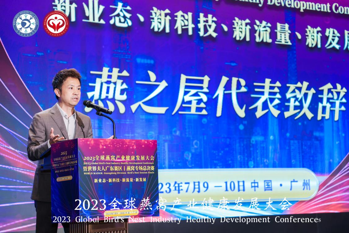 本次盛會以“新業(yè)態(tài)、新科技、新流量、新發(fā)展”為主題,聚焦行業(yè)前沿資訊、創(chuàng)新發(fā)展與破局之道,來自國內(nèi)外燕窩精英匯聚一堂,相互學(xué)習(xí)、資源對接、整合力量、抱團發(fā)展,推動燕窩行業(yè)的健康發(fā)展。作為燕窩行業(yè)頭部企業(yè)、本次大會的支持單位,燕之屋不僅見證了燕窩行業(yè)的發(fā)展與崛起,更始終堅持高質(zhì)量發(fā)展道路,為行業(yè)進步貢獻力量。開幕儀式上,燕之屋品牌總監(jiān)沈曉聰上臺致辭,他說道“作為燕窩行業(yè)的重要一員,燕之屋25年始終堅持品質(zhì)為先、追求卓越的理念。我們嚴格把控產(chǎn)品的每一個環(huán)節(jié),力求為消費者提供最優(yōu)質(zhì)的燕窩產(chǎn)品。同時,我們也積極承擔社會責任,以推動燕窩產(chǎn)業(yè)的健康發(fā)展為己任。我們深知,燕窩產(chǎn)業(yè)的未來發(fā)展離不開每一個成員的共同努力,我們需要深化合作,共享資源,共創(chuàng)價值,只有這樣,我們才能實現(xiàn)產(chǎn)業(yè)的持續(xù)發(fā)展,滿足消費者對高品質(zhì)生活的需求。”