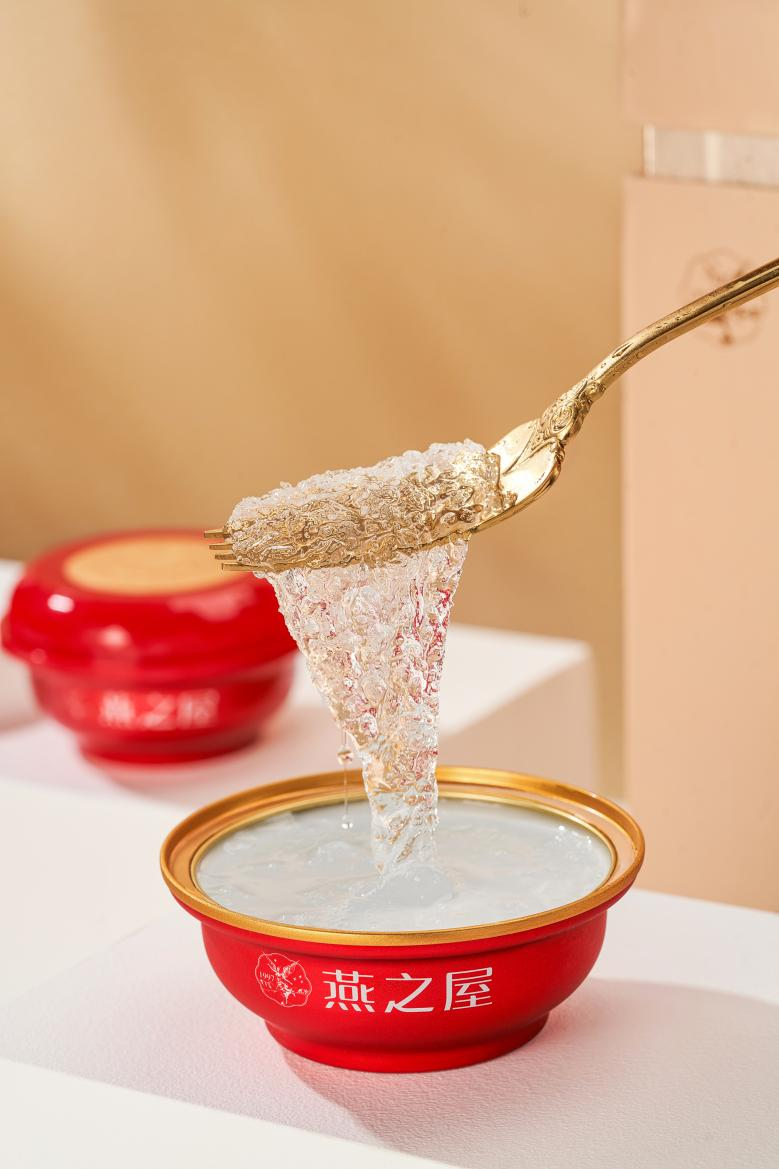 燕之屋25年專注高品質(zhì)燕窩,根植燕窩文化、專注燕窩生產(chǎn),49道工序嚴(yán)苛把關(guān)、精工細(xì)作,實現(xiàn)碗燕·濃鮮款濃、鮮、純?nèi)蠼】底甜B(yǎng)特質(zhì),為消費者帶來夏日新滋養(yǎng)。碗燕·濃鮮款原料甄選東南亞優(yōu)質(zhì)金絲燕燕窩,配料只含燕窩、冰糖、純凈水,天然滋養(yǎng)輕負(fù)擔(dān)。經(jīng)反復(fù)實驗測試,采用121℃鮮萃工藝,密封燉煮,牢牢鎖住新鮮,不浪費一絲營養(yǎng)。經(jīng)過高溫?zé)踔蠛蟮耐胙?middot;濃鮮款滅菌徹底,產(chǎn)品0脂肪、0防腐劑、0增稠劑、0添加劑*(*指本產(chǎn)品生產(chǎn)過程中0%添加防腐劑山梨酸鉀、苯甲酸鈉,0%添加增稠劑瓊脂)。每一份碗燕·濃鮮款食用燕窩投料量不低于5克,燕窩酸含量不低于300mg,燕窩絲絲晶瑩,滿滿營養(yǎng)價值。作為宴席頭盤菜,碗燕·濃鮮款入口清爽濃醇,以濃、鮮、純喚醒味蕾,贏得“品鑒官”們的一致好評。