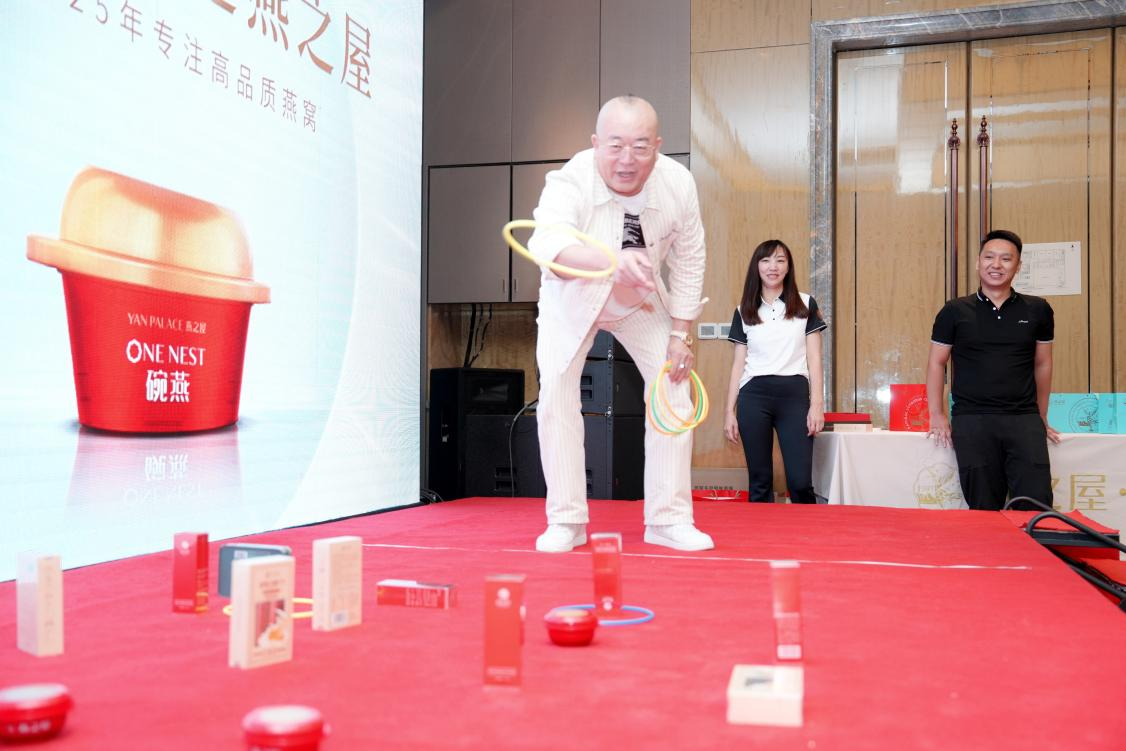 觥籌交錯(cuò)間,歌舞助雅興。臺(tái)下貴賓開懷暢飲,品美味佳肴,臺(tái)上小提琴、舞蹈輪番上演,掀起視聽盛宴。其中,燕之屋工作人員特別準(zhǔn)備感恩舞蹈,以滿滿誠意答謝在座貴賓。席間,燕之屋還精心安排套圈游戲,賓客們熱情參與,盡情享受游戲的樂趣。