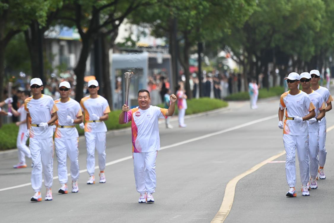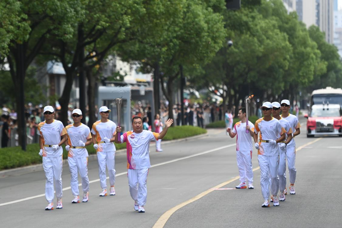 上午9點(diǎn),杭州第19屆亞運(yùn)會(huì)火炬?zhèn)鬟f臺(tái)州站正式啟動(dòng)。路線安排圍繞“詩畫江南,活力浙江”的省域品牌,凸顯“和合臺(tái)州,活力城市”的特色主題,起點(diǎn)設(shè)在和合公園,終點(diǎn)設(shè)在臺(tái)州市體育中心北門,全長8公里。臺(tái)州站火炬?zhèn)鬟f共設(shè)置170棒,在第138棒接力點(diǎn)位,燕之屋總裁李有泉身著杭州亞運(yùn)會(huì)火炬手運(yùn)動(dòng)服,手持火炬接過亞運(yùn)圣火,執(zhí)炬奔跑,詮釋昂揚(yáng)向上的時(shí)代風(fēng)貌。
