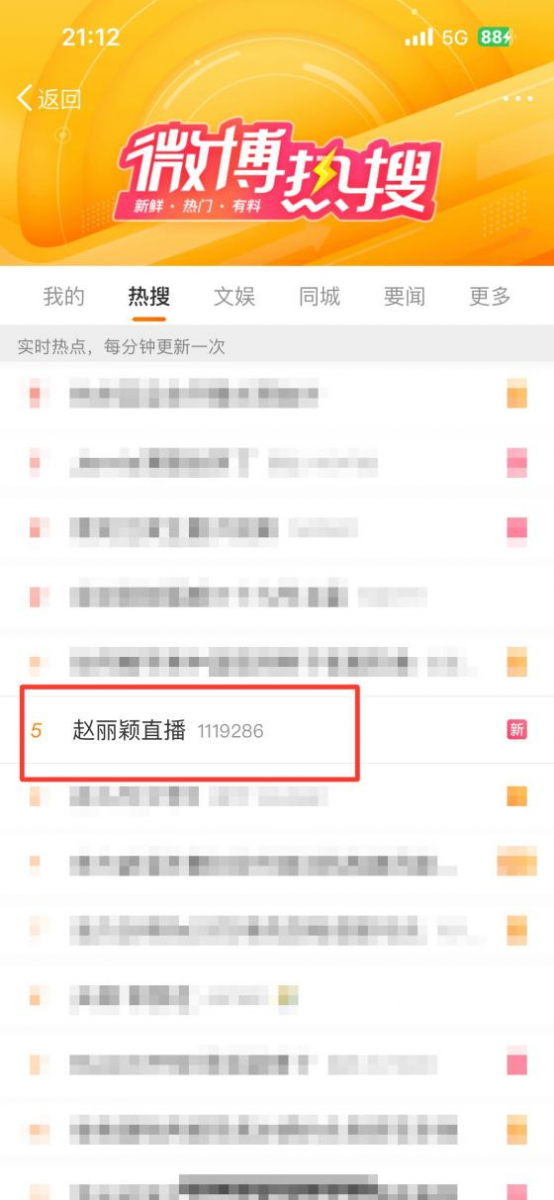 圖:#趙麗穎直播#話題登上微博熱搜榜5名