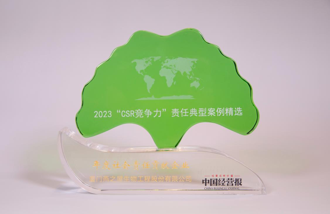圖:燕之屋榮獲2023“CSR競爭力”責任典型案例精選“年度社會責任貢獻企業(yè)”