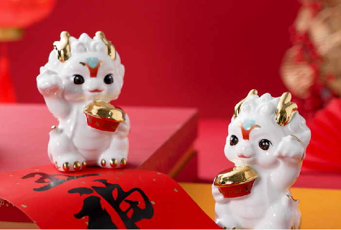燕之屋龍行龘龘新年禮盒美味與趣味兼?zhèn)?,內贈燕之?amp;永豐源聯(lián)名限定金燕祥龍?zhí)沾蓴[件2個,精致玲瓏,憨狀可掬。兩只小福龍一手捧著碗燕,一手迎燕來,開啟新春好兆頭。面部使用龍鱗花鈿裝飾,龍腳踏祥云紋,身上裝飾福字、飛燕紋等,寓意平步青云、突飛猛進、步步高飛,為新春禮贈增添驚喜與樂趣。