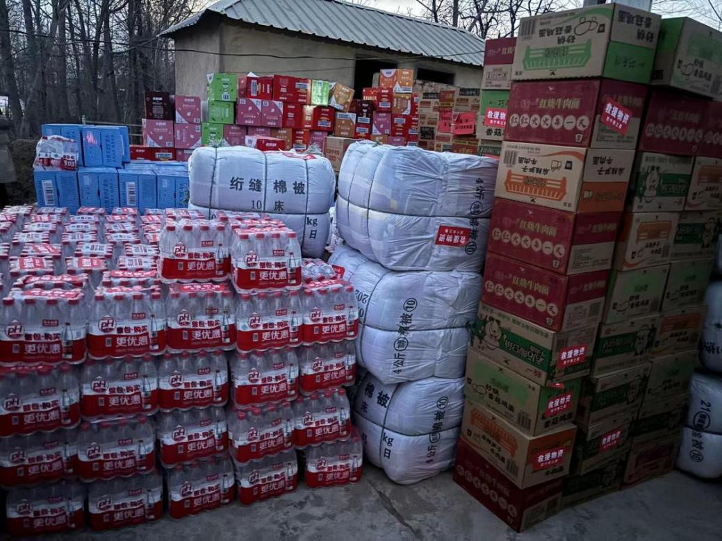 圖:燕之屋抗震救災(zāi)物資抵達(dá)青海省海東市民和縣鮑家村