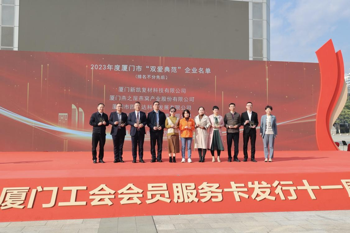近日,由廈門市總工會、廈門市工商聯(lián)、工商銀行廈門分行共同舉辦的“雙愛雙促·共創(chuàng)美好”暨工會會員服務(wù)日活動圓滿舉行。在“雙愛典范”頒獎(jiǎng)儀式上,燕之屋榮獲2023年度廈門市“雙愛典范”企業(yè),燕之屋創(chuàng)始人、執(zhí)行董事兼董事長黃健代表領(lǐng)獎(jiǎng)。