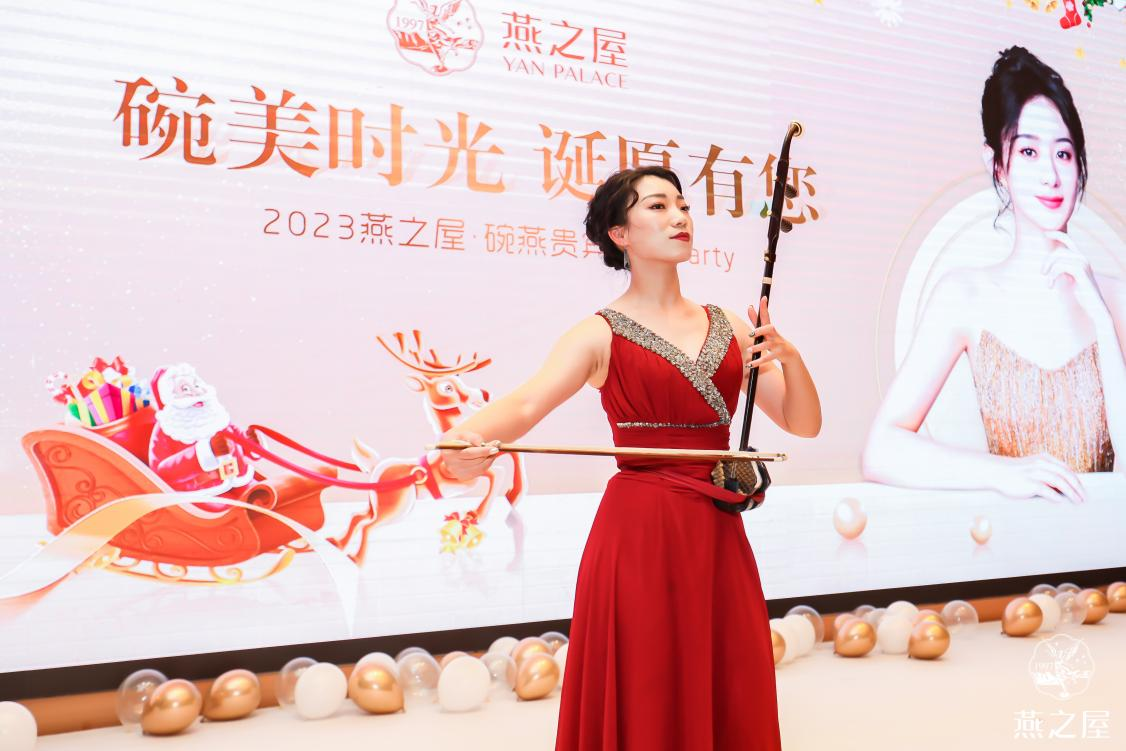12月25日,恰逢圣誕節(jié),宴會廳內(nèi)外燈光璀璨,香檳色氣球點(diǎn)綴其間,處處洋溢著節(jié)日的氛圍。燕之屋特別為每位嘉賓準(zhǔn)備圣誕糖果盒和龍年玩偶伴手禮,禮物包裹著溫情的節(jié)日祝福,為凜凜冬日帶來一份別樣的暖意。在觥籌交錯(cuò)間,賓客們談笑風(fēng)生,同時(shí)欣賞嘉賓二胡演奏《我和我的祖國》與《今夜無眠》、燕之屋團(tuán)隊(duì)舞蹈《相親相愛》等,席間擊鼓傳碗、你來比劃我來猜、自由點(diǎn)歌等互動(dòng)游戲陸續(xù)上演,五輪抽獎(jiǎng)活動(dòng)更是驚喜不斷,隨著豪華大禮和幸運(yùn)兒依次揭曉,笑聲、掌聲此起彼伏,晚宴現(xiàn)場氣氛燃至高點(diǎn)。