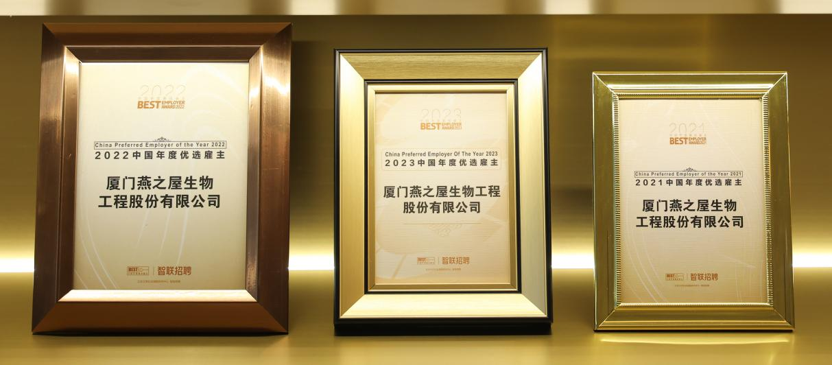 圖:燕之屋2021-2023連續(xù)三年獲得中國(guó)年度優(yōu)選雇主
