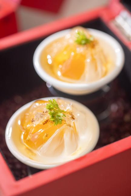 金絲燕燕窩入饌,燕絲豐盈,色澤晶瑩。其中,
