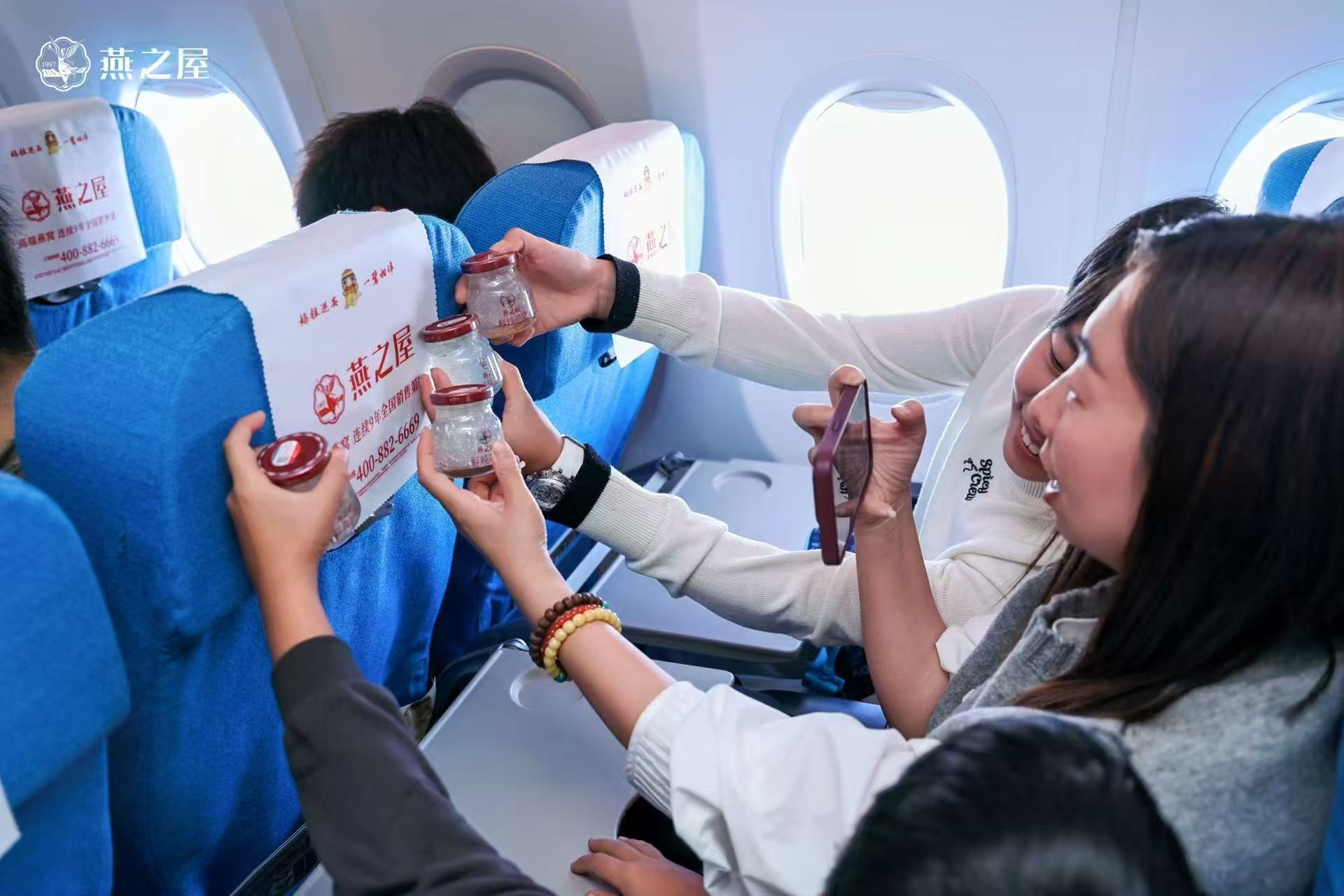 燕之屋與廈門航空打造的婦女節(jié)主題航班由廈門起飛,前往北京。登機(jī)前,節(jié)日氣息就已從登機(jī)口蔓延開來(lái)。燕之屋在登機(jī)口設(shè)置品牌展區(qū),邀請(qǐng)旅客拍照打卡,并派送燕之屋燕窩肽蘇打水,溫暖開啟活動(dòng)的首波福利,陪伴旅客愉快登機(jī)。