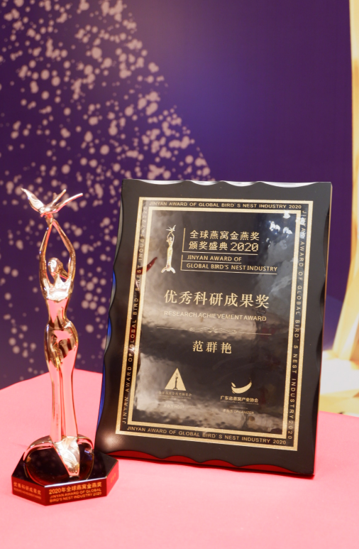 5月27日,燕之屋榮獲福建省食品工業(yè)協(xié)會頒發(fā)“科技成果轉(zhuǎn)化示范企業(yè)”獎項、燕之屋燕窩研究項目獲“第六屆福建省食品工業(yè)科學(xué)技術(shù)進步一等獎”,燕之屋副總經(jīng)理、研發(fā)總監(jiān)范群艷亦被頒予“福建食品工業(yè)40年突出貢獻人物”獎項。