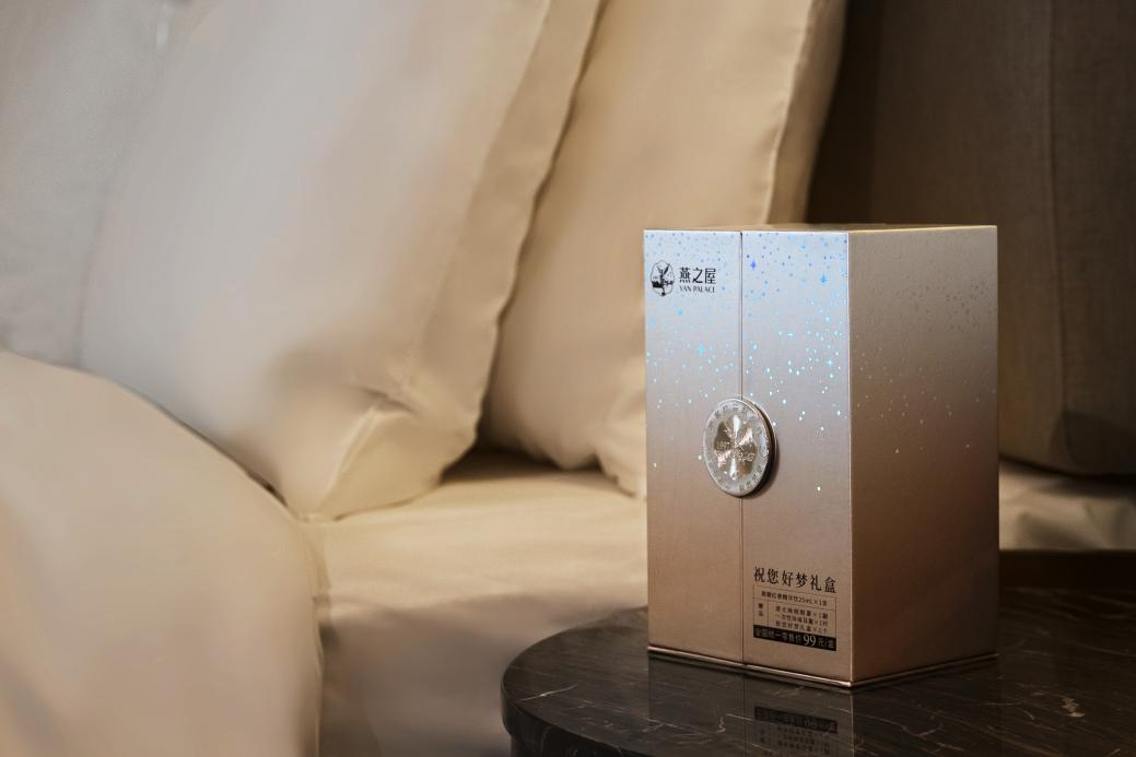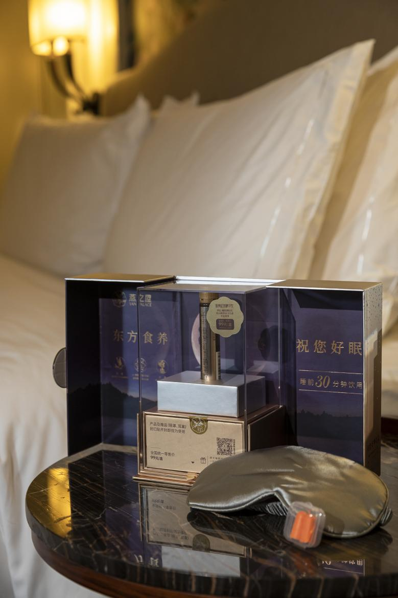更加貼心的是,燕之屋·燕窩紅參精華飲(祝您好夢禮盒)在包裝上亦煞費(fèi)苦心。燕之屋·燕窩紅參精華飲(祝您好夢禮盒)外包裝以金屬光澤的漸變香檳金為基調(diào),以繁星、女神為元素,中心搭配燙金logo設(shè)計(jì),有一種渾然天成的靜謐;內(nèi)里則由深邃的星空、靜謐的湖水、溫柔月光下的女神融合而成,水天一色的景象恍若夢境。打開禮盒,燕之屋·燕窩紅參精華飲、遮光眼罩、輕巧耳塞躍然而出,仿佛在敦促投宿者漸入夢境。旅途奔波后下榻海悅山莊,臨睡之際,不妨放緩步調(diào),飲一支燕窩紅參精華飲,戴上眼罩和耳塞,用一盒安睡組合,沉淀身心,安享五星級睡眠之旅。