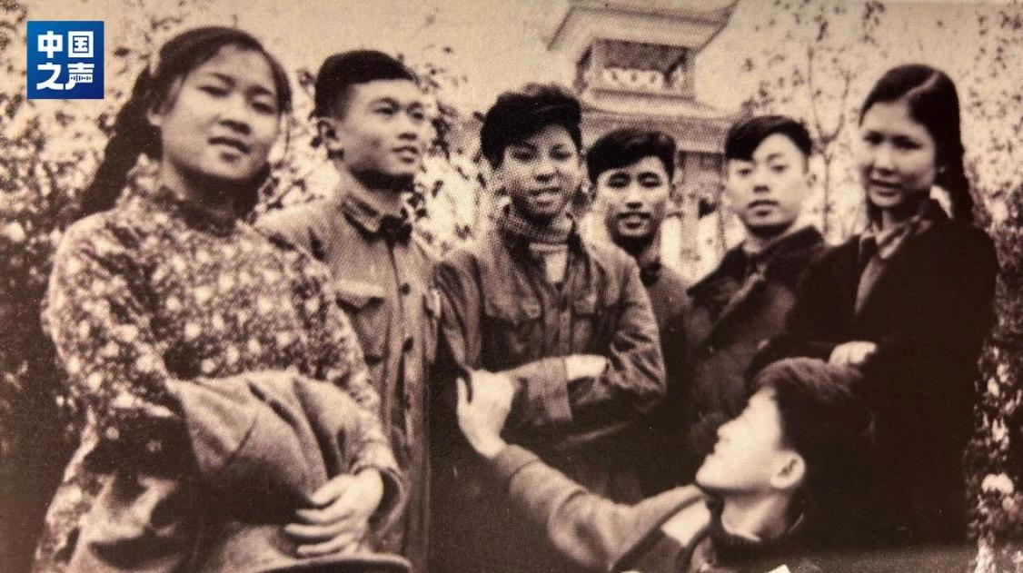 圖:1958年,王勁梅(右一)與重慶市文藝工作團(tuán)學(xué)生隊隊員合影