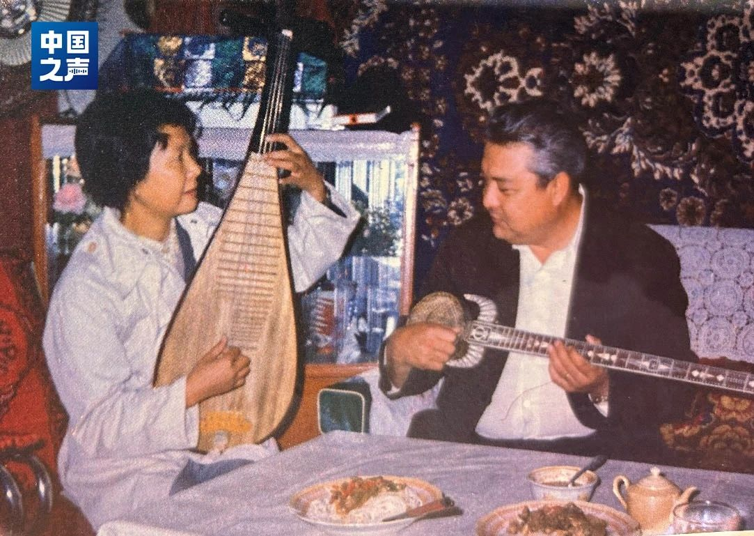 圖:王勁梅和被譽為“都塔爾王子”的木沙江·肉孜先生