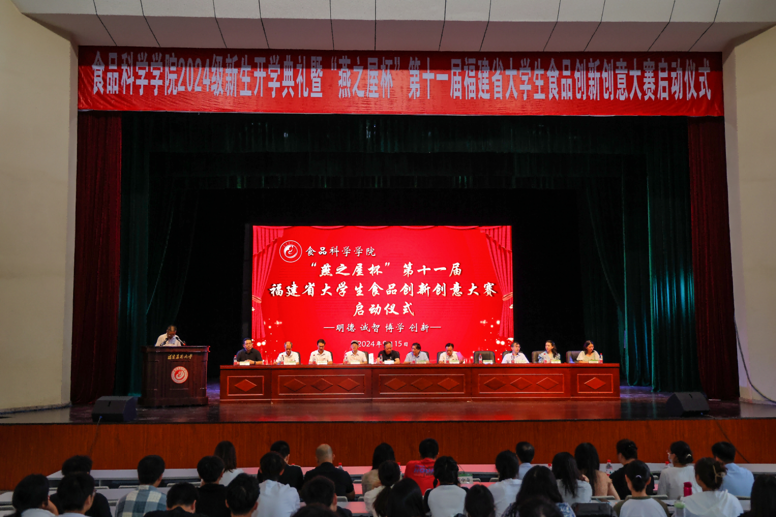 9月15日下午,以“‘燕’領(lǐng)健康潮,營養(yǎng)新‘食’代”為主題的“燕之屋杯”第十一屆福建省大學(xué)生食品創(chuàng)新創(chuàng)意大賽啟動儀式在福建農(nóng)林大學(xué)舉行。福建省第十一屆政協(xié)副主席陳紹軍教授,福建農(nóng)林大學(xué)副校長鄭寶東教授,燕之屋創(chuàng)始人、董事長黃健,福建省食品加工與貯藏工程學(xué)會理事長及福建農(nóng)林大學(xué)食品科學(xué)學(xué)院黨政班子、參賽單位教師代表及學(xué)生近500人參加了啟動儀式。啟動儀式由食品科學(xué)學(xué)院黨委書記蘇健涵主持。