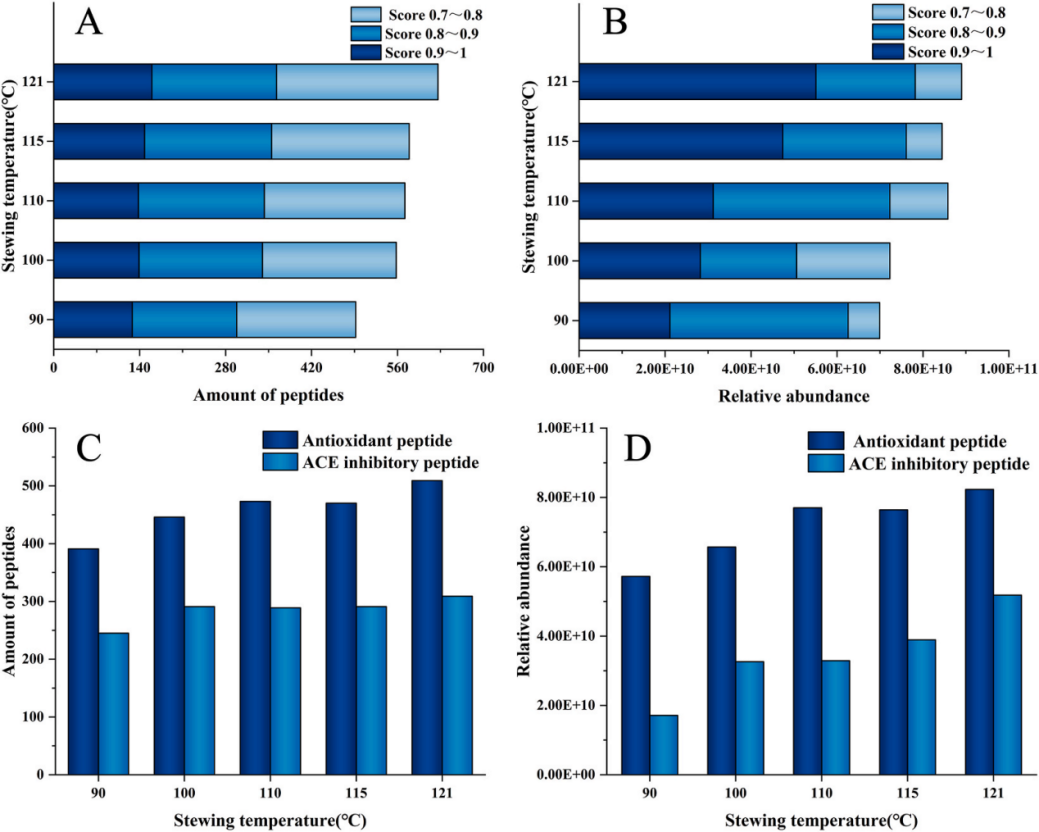 而燕之屋本次與江南大學(xué)合作發(fā)表的權(quán)威SCI論文,則在這一認(rèn)知基礎(chǔ)上實(shí)現(xiàn)了更深層次的突破。研究表明,121℃燉煮工藝不僅使燕窩蛋白更易被消化,更在此基礎(chǔ)上促進(jìn)了具有特定生理功能的小分子活性肽的釋放② 。具體實(shí)驗(yàn)數(shù)據(jù)顯示,經(jīng)過121℃燉煮的燕窩,相較于傳統(tǒng)燉煮的燕窩,活性肽的數(shù)量增加了27.2%,含量上升了27.3%,同時(shí),其ACE(血管緊張素轉(zhuǎn)化酶)抑制活性提升了28.6%② 。ACE抑制活性是現(xiàn)代健康科學(xué)中公認(rèn)的一項(xiàng)重要生物功能,代表著有助于維持健康血壓水平、保護(hù)心血管系統(tǒng)健康的潛力② 。這項(xiàng)研究結(jié)果通過量化數(shù)據(jù)揭示了,科學(xué)的燉煮工藝能夠增加燕窩中特定活性物質(zhì)的含量,同時(shí)增強(qiáng)燕窩在特定健康領(lǐng)域的生物活性潛力。